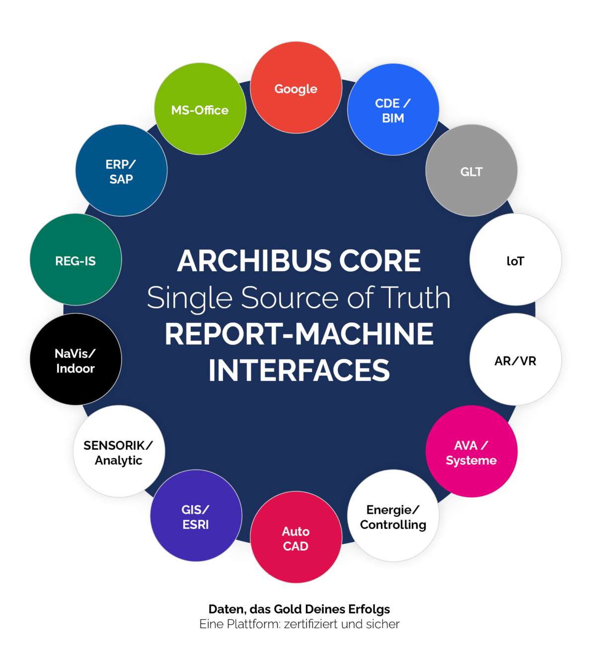 Sie sind GEFMA 444 zertifiziert, mit Standards für das digitale Datenmanagement nach IFC, COBie und CAFM-Connect hinterlegt und aufgestellt für Building Information Modelling und Internet Of Things. AutoCAD, ESRI (GIS) und NavVis IndoorViewers sind integriert, Schnittstellen etwa zu SAP mehrfach realisiert. Sie können den individuellen Anforderungen der Kunden angepasst werden. Auf Anwenderfreundlichkeit wird höchster Wert gelegt.